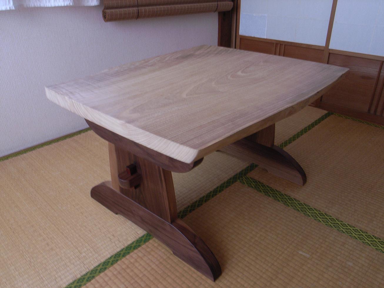 桐とウォールナットのローテーブルです。天板は桐一枚板、足はウォールナットで作りました。足はばらせますので運ぶ時は便利です。これからは、テーブルなども製作してゆきたいと思います。