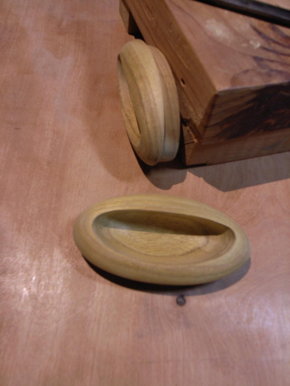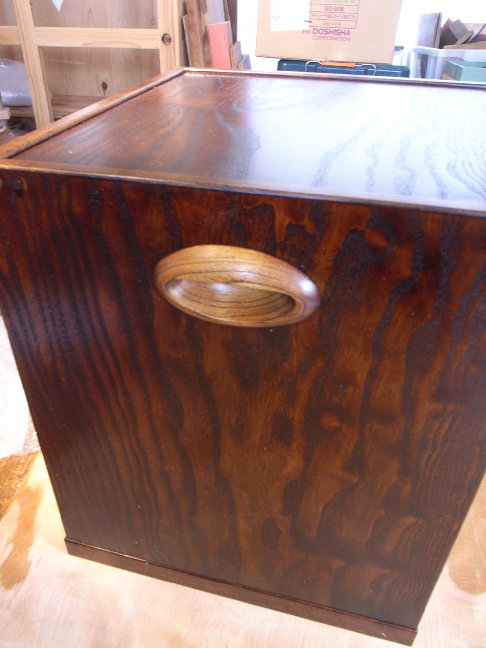 以前、お作りした製品の脇取手が使いづらいとのいことで、お直しいたしました。(すみませんでした。)島桑の取手です。